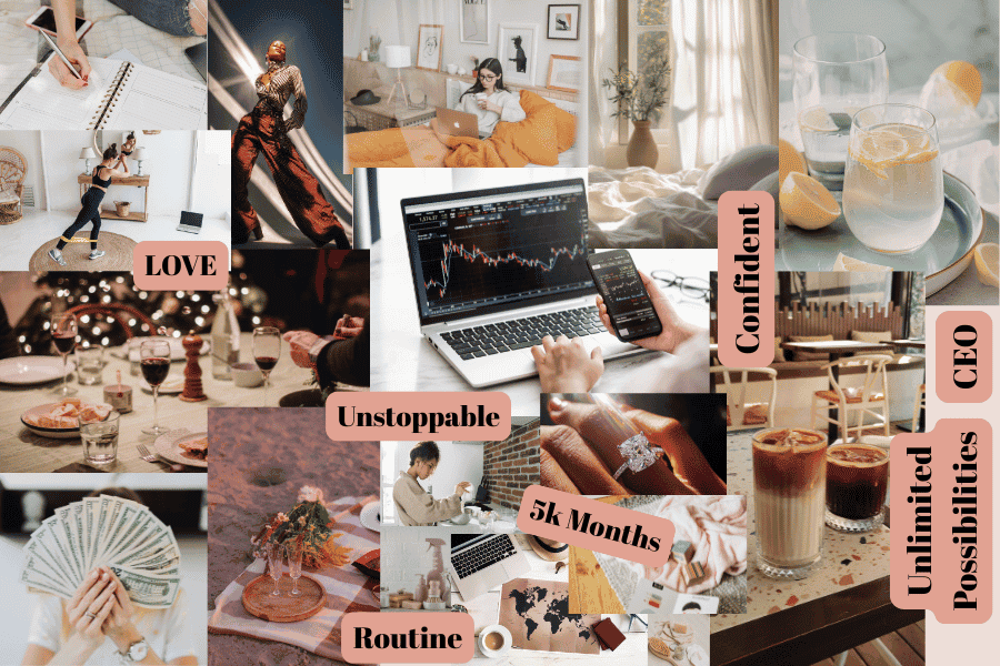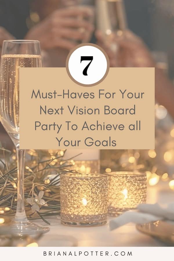 A vision board party is like a goal-setting party! Where you create a visualization of your dream life goals. Usually, people bring their poster boards and pictures, then spend an hour or two flipping through magazines or Pinterest.